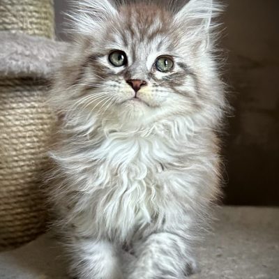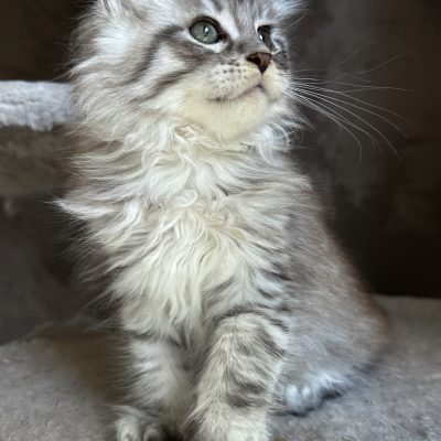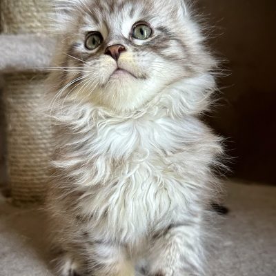 Née à la Chatterie, Ulula a hérité des grandes qualités de ses parents issus de prestigieuses lignées Russes. Vive, enjouée elle est cependant une excellente mère attentive à ses bébés.